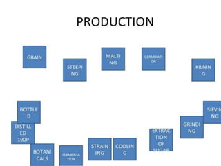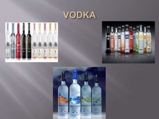 This document discusses the process of making flavored vodkas. It begins by listing several popular brands of flavored vodka such as Absolut Peach and Skyy Orange. It then explains the basic process of vodka production, including selecting grains, mashing, fermentation, distillation, blending, filtering and adding natural flavors. The goal is to distill the liquid three times to produce a clean, neutral spirit before flavoring it and bottling. Proper filtration is important for removing impurities and ensuring a clear appearance in the final product.
