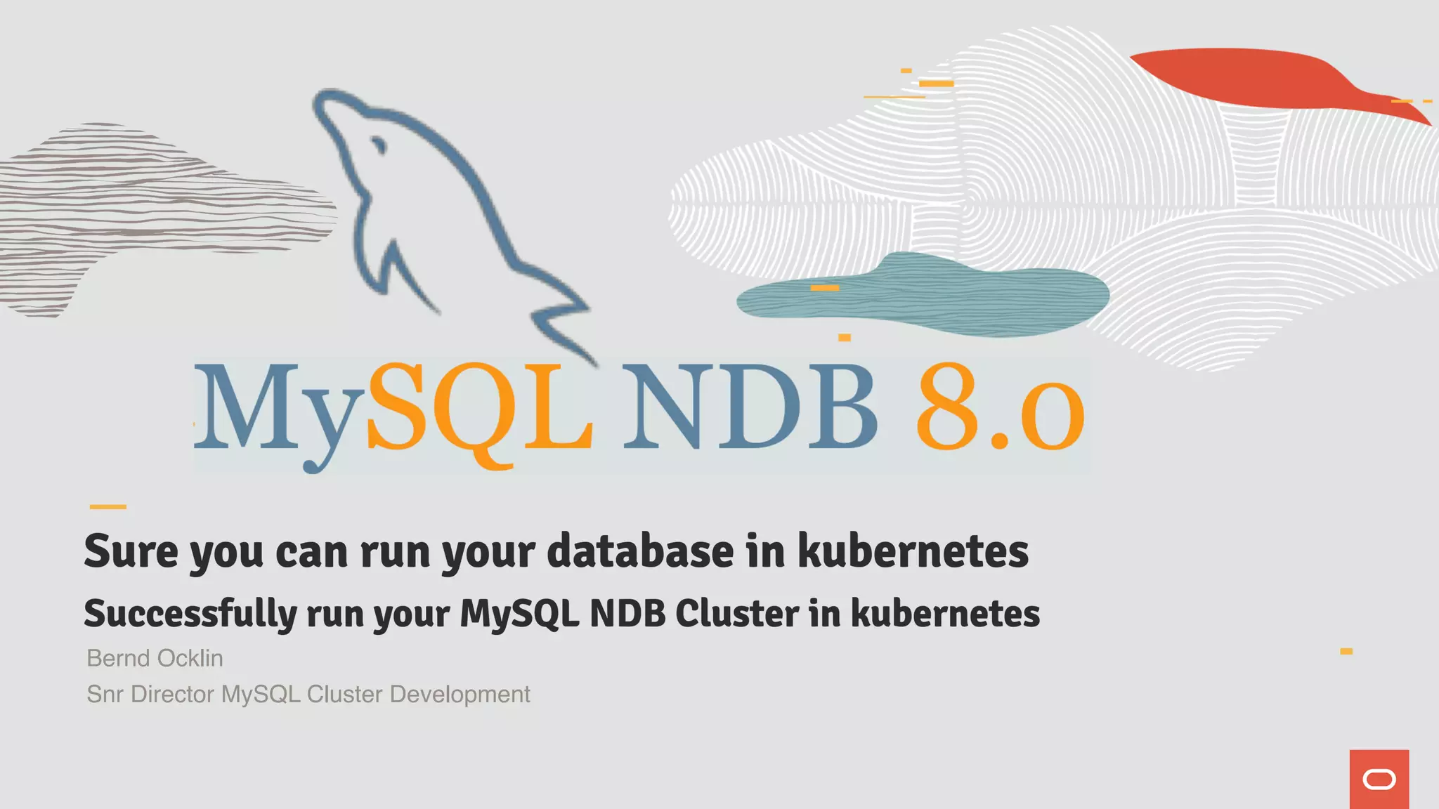 Bernd Ocklin, Senior Director of MySQL Cluster Development at Oracle, specializes in MySQL NDB Cluster, focusing on massively scalable, distributed datasets with high availability and automated management. The document outlines the benefits of running MySQL NDB Cluster in cloud-native environments, emphasizing its resilience, consistent data access, and architecture designed for Kubernetes. Additionally, it discusses best practices for deploying and managing databases in Kubernetes, including configuration management, pod orchestration, and the use of statefulsets.
