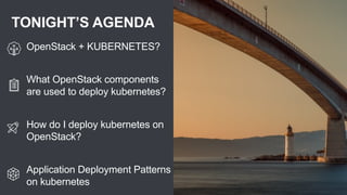 The document explores the integration of Kubernetes with OpenStack, detailing the history and components of both technologies. It discusses the advantages of using containers and Kubernetes for application deployment, including scalability and management challenges. Additionally, it highlights Rackspace's managed Kubernetes solution, focusing on its features such as security, ease of use, and support options.