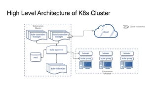 This document provides an overview of running Kubernetes and its key components. It describes where Kubernetes clusters can be run, such as on Amazon EKS, Google GKE, Azure AKS, or self-hosted. It also discusses tools for managing Kubernetes clusters like kops, and autoscaling options like Cluster Autoscaler and Horizontal Pod Autoscaler. Additionally, it covers Kubernetes concepts like pods, services, ingress, jobs, cronjobs, and using Helm to manage Kubernetes applications.