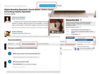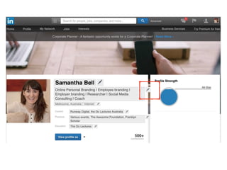 This document is a guide by Sam Bell from Runway Digital, aimed at helping professionals enhance their LinkedIn profiles to stand out and attract relevant connections. It includes tips on setting intentions, polishing profiles, adding key information like job titles and endorsements, and engaging with connections. The guide emphasizes the importance of presenting oneself effectively to be found as an expert in the community.