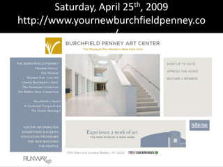 The document announces the 'Runway 2.0' fashion show hosted by Buffalo State College and the Burchfield Penny Art Center, inspired by the exhibition 'The Romance of Urban Decay'. It emphasizes the connection between fashion, culture, and identity, showcasing student and professional designs against the backdrop of the exhibition. Proceeds from the event will benefit the Fashion Technology student scholarship fund, with additional fundraising activities mentioned.