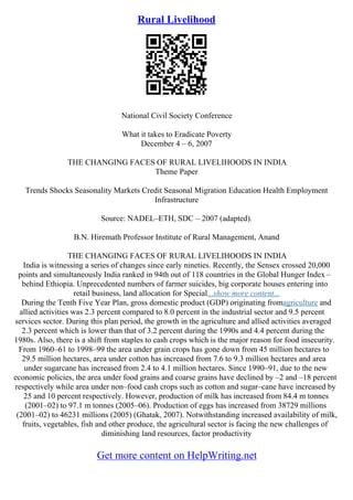The document discusses rural development in India through the Agrarian Reform Infrastructure Support Project (ARISP) III. The project aims to provide basic infrastructure, organize farmers, and support agriculture and business development in underserved agrarian reform communities. Specifically, it will deliver services to 129 communities, consolidate economic activities, and increase income for about 700 farmer beneficiaries across three sites in Quezon province. The expected outcomes are increased household income and productivity through integrated development support.