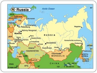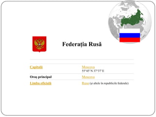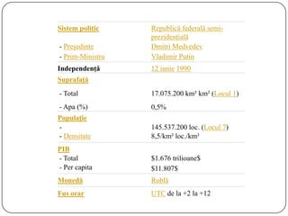 Documentul discută despre aspecte geografice ale Rusiei, inclusiv harta rețelei de foarte înaltă tensiune din perioada sovietică. De asemenea, sunt menționate repere culturale și istorice, precum Catedrala Sf. Vasile, vulcanul Avacinski și contribuțiile lui Iuri Gagarin și Aleksandr Pușkin.