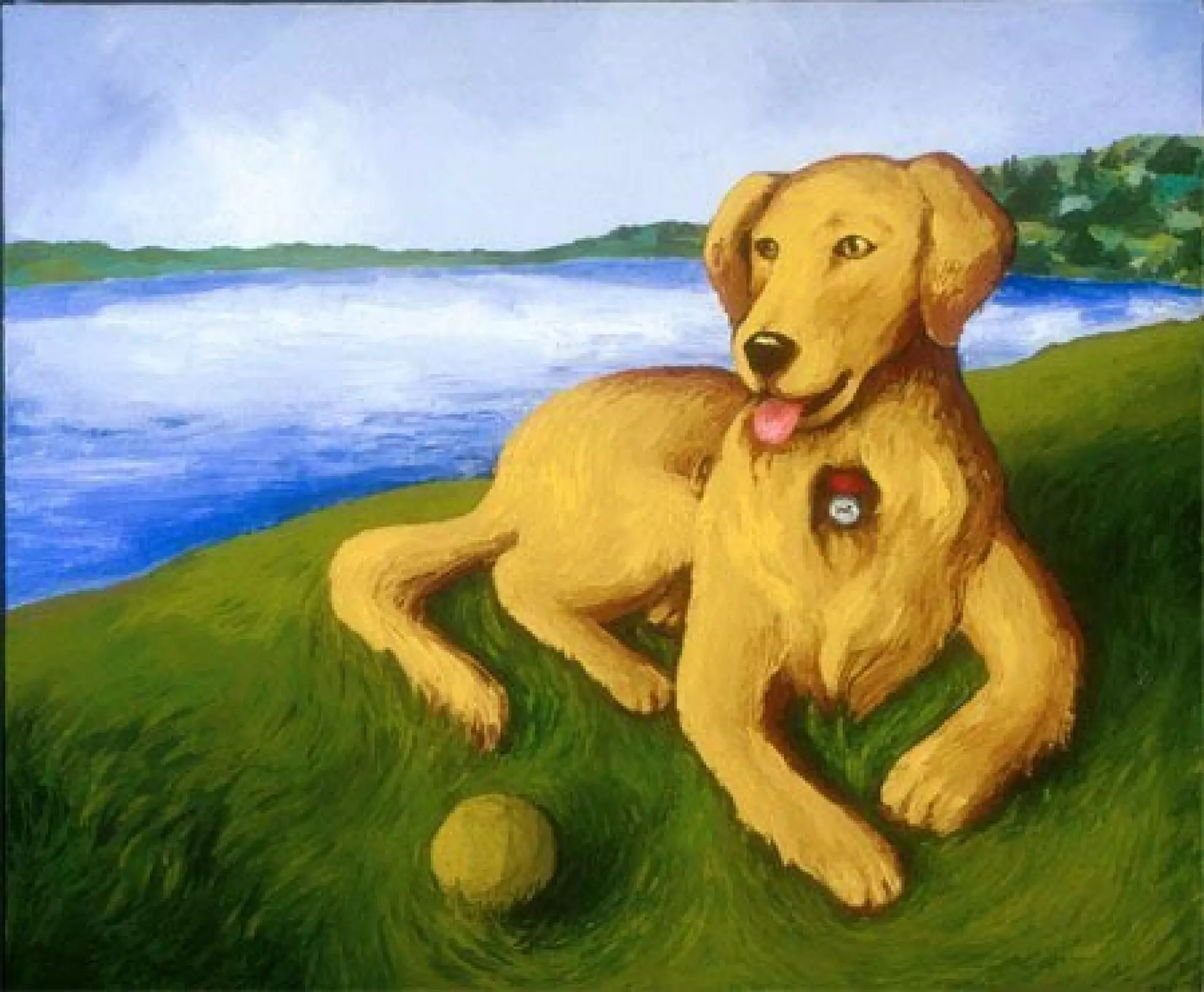Russell, pet portrait created as surprise gift for client\'s friend. Oil on canvas, 24" x 16". Based on photographs and live sketches.