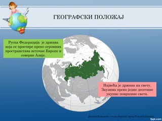 #11 У Русији има много различитих врста предела. Далеко на северу је ледена тундра. На југу су шумовите области тајге. На западу су огромне равнице и степе, где је довољно топло да би се узгајале пољопривредне културе. На истоку се уздижу високе ледене планине.