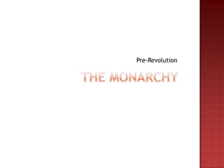 The document provides background information on Russia prior to the 1917 revolution. It summarizes that Czar Nicholas II was an inept ruler during a time of famine, war losses, and growing unrest against the monarchy. The February Revolution of 1917 forced Nicholas to abdicate and a provisional government took over, but the Bolsheviks then seized power in October 1917 under Lenin. A civil war ensued as the Bolsheviks consolidated power and established a communist state under Lenin and later Stalin through authoritarian means.