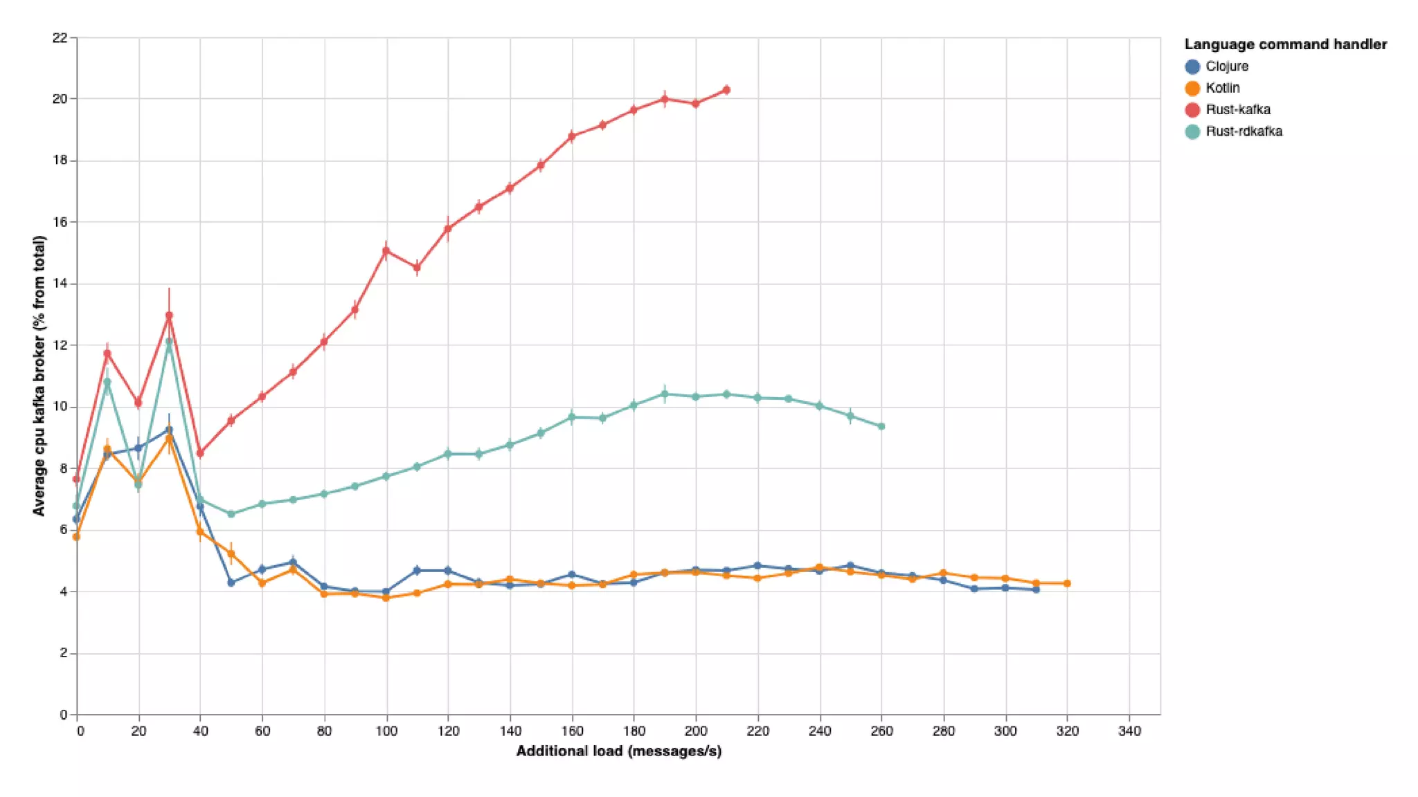 The document discusses the integration and testing of various programming languages (Java, Kotlin, Rust) with Kafka for a banking application. It details the architecture, components, and performance metrics derived from end-to-end performance tests, highlighting the advantages and considerations for each language. Furthermore, it describes the setup of a frontend, backend services, and the use of GraphQL for user interactions in the system.