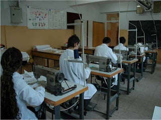 This document provides information about the fields and departments at Anatolia Vocational High School. It outlines 6 main fields: Art and Design, Computer Technology, Graphics and Photography, Clothing Manufacturing Technology, Children Development and Education, and Information Technology. Within each field are multiple departments that provide training in areas like graphic design, web programming, early childhood education, and fashion design. The goal is to equip students with vocational skills and qualifications to work in those respective industries.