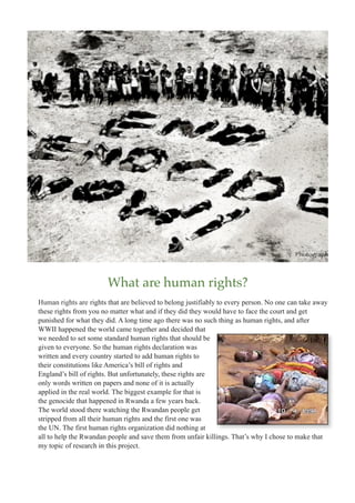 The document discusses the Rwandan genocide of 1994, where Hutu extremists killed 800,000 Tutsi and moderate Hutus over the span of 100 days. It notes that the UN and other international organizations failed to intervene to stop the genocide despite being aware it was occurring. The ongoing conflict in Syria is presented as a modern example of genocide that the UN continues to fail to prevent or stop. Preventing future genocides would require recognizing them as such, establishing procedures to protect civilians, and ensuring perpetrators are punished to deter future crimes.
