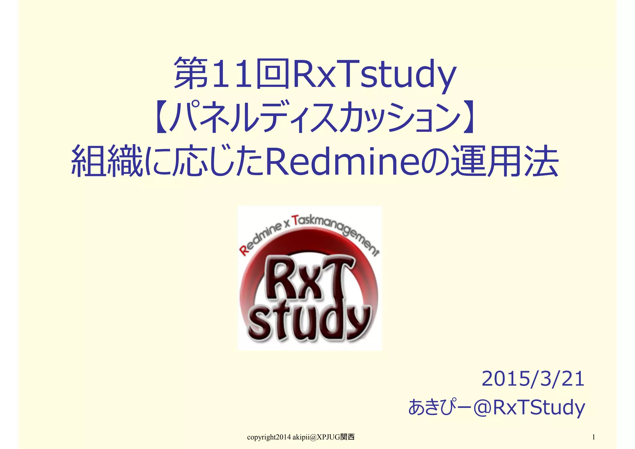 第12回RxTstudy【パネルディスカッション】組織に応じたRedmineの運用法