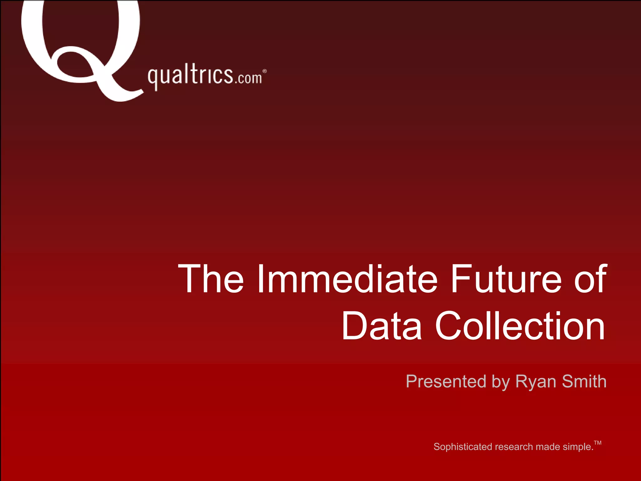 The presentation discusses the immediate future of data collection, which will be more interactive, intelligent, and immediate. It will be more interactive by making data collection more engaging to overcome subject fatigue through features like hot spots and pick/group/rank. It will be more intelligent by making data collection dynamic and observant using personalized experiences, on-the-fly analysis, and better subject selection based on metadata. It will be more immediate through more collection points, faster analysis, and instant studies.