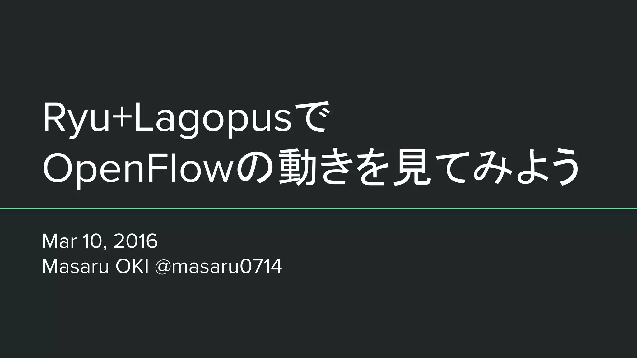 Ryu+Lagopusで OpenFlowの動きを見てみよう Mar 10, 2016 Masaru