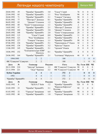Легенди нашого чемпіонату 20.04.1992 23.04.1992 26.04.1992 03.05.1992 06.05.1992 09.05.1992 14.05.1992 17.05.1992 20.05.1992 26.05.1992 29.05.1992 01.06.1992 07.06.1992 10.06.1992 13.06.1992 59 65 71 77 83 89 97 102 108 115 121 127 134 138 145 18.06.1992 152 24.06.1992 164 "Кривбас"