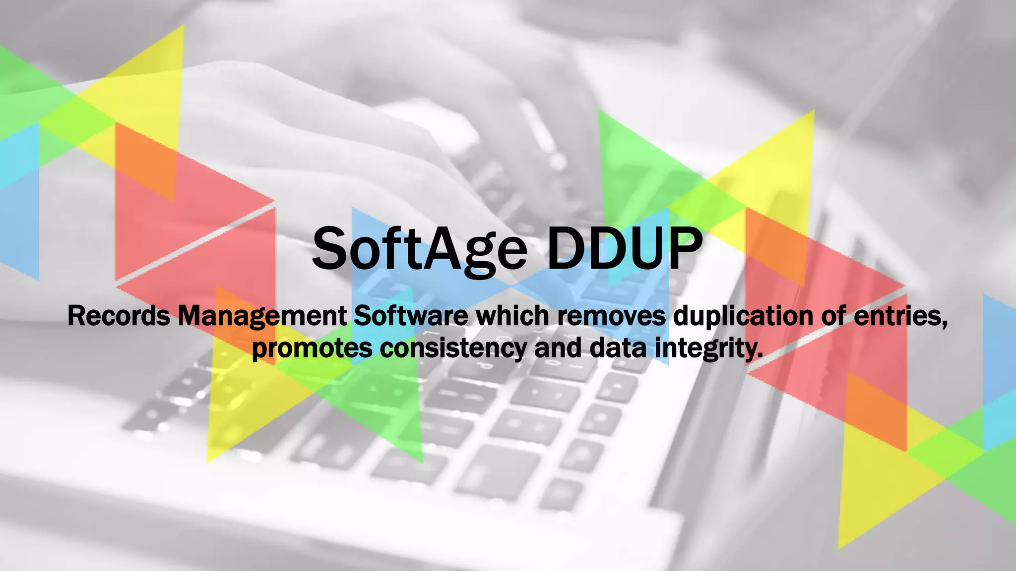 The document discusses Softage Information Technology Ltd.'s records management software, which focuses on de-duplication to enhance data integrity by identifying duplicate customer entries using various matching criteria such as name, father name, and address. It addresses challenges like distinguishing records with similar names and addresses, coping with large databases, and incorporating a web service for seamless de-duplication requests. The document also provides contact information for further inquiries.
