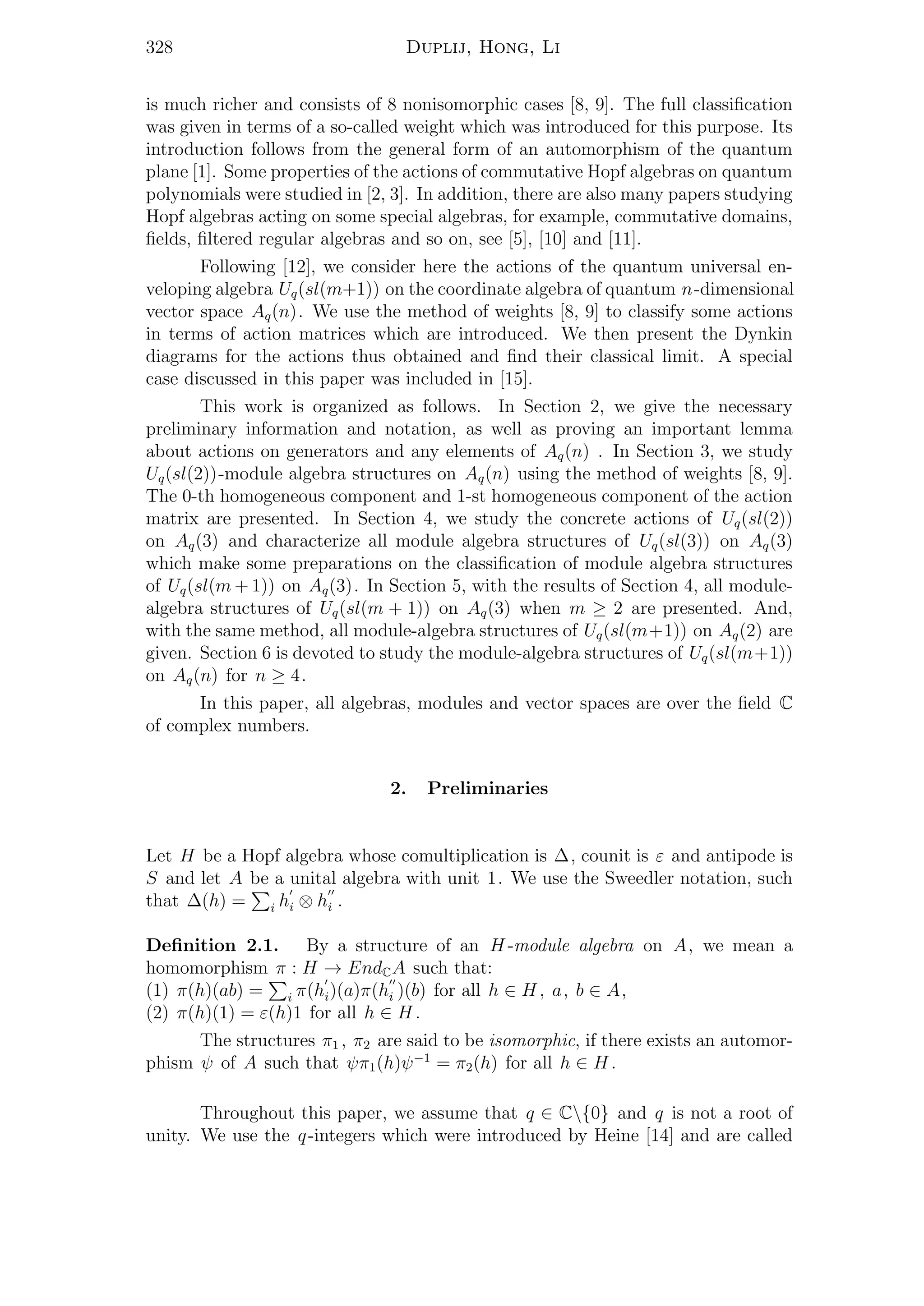 3) The module-algebra structures of Uq(sl(m+1)) on Aq(n)