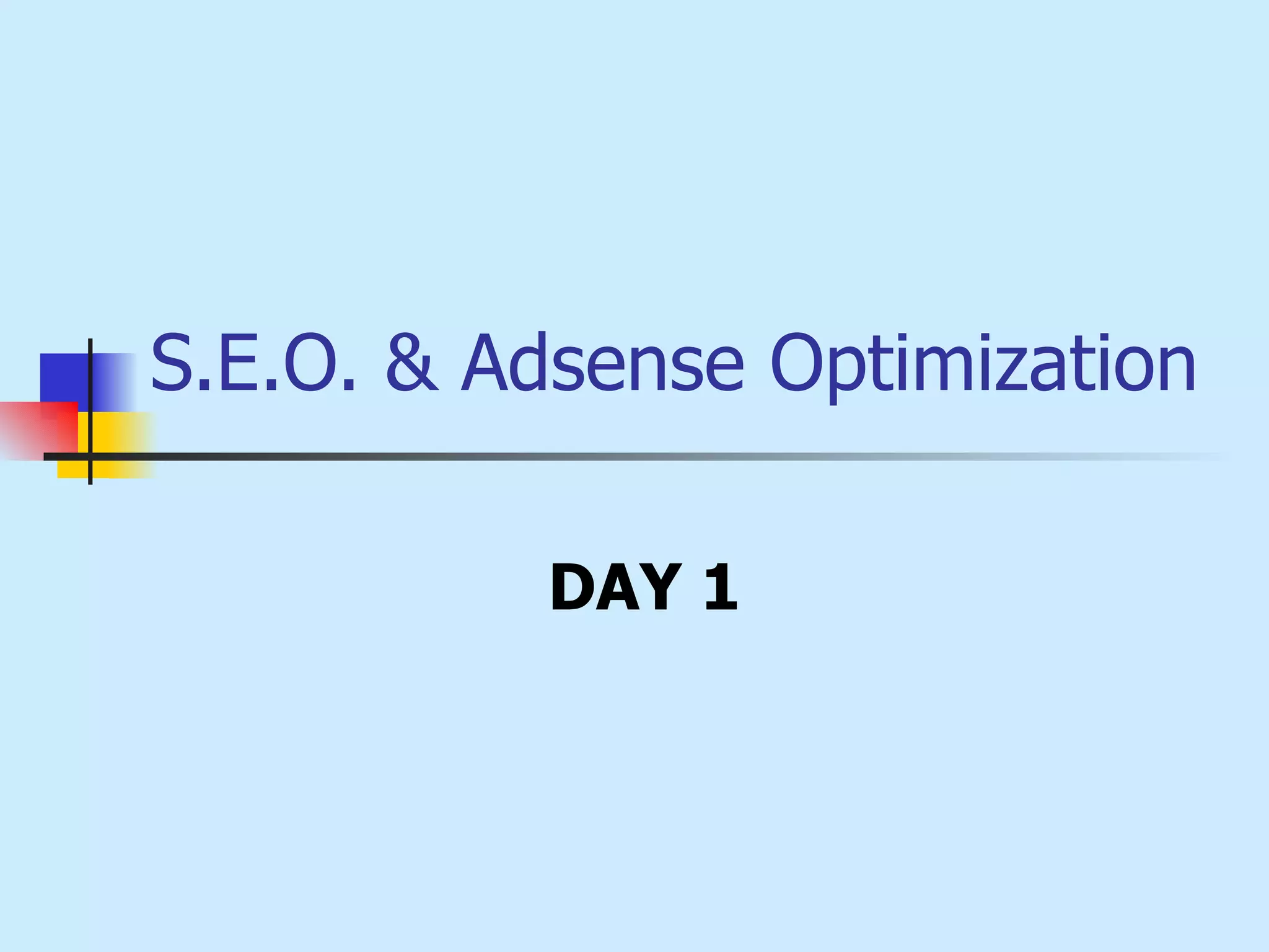 The document outlines a comprehensive seminar on SEO and Adsense optimization, detailing the agenda, goals, and objectives for participants to create and monetize websites effectively. It covers fundamental concepts of Adsense, SEO techniques, effective website design principles, keyword strategies, and methods for optimizing traffic for revenue generation. The document also emphasizes the importance of high-quality content, user experience, and strategic balancing of visitor interest with high bid-value ads.
