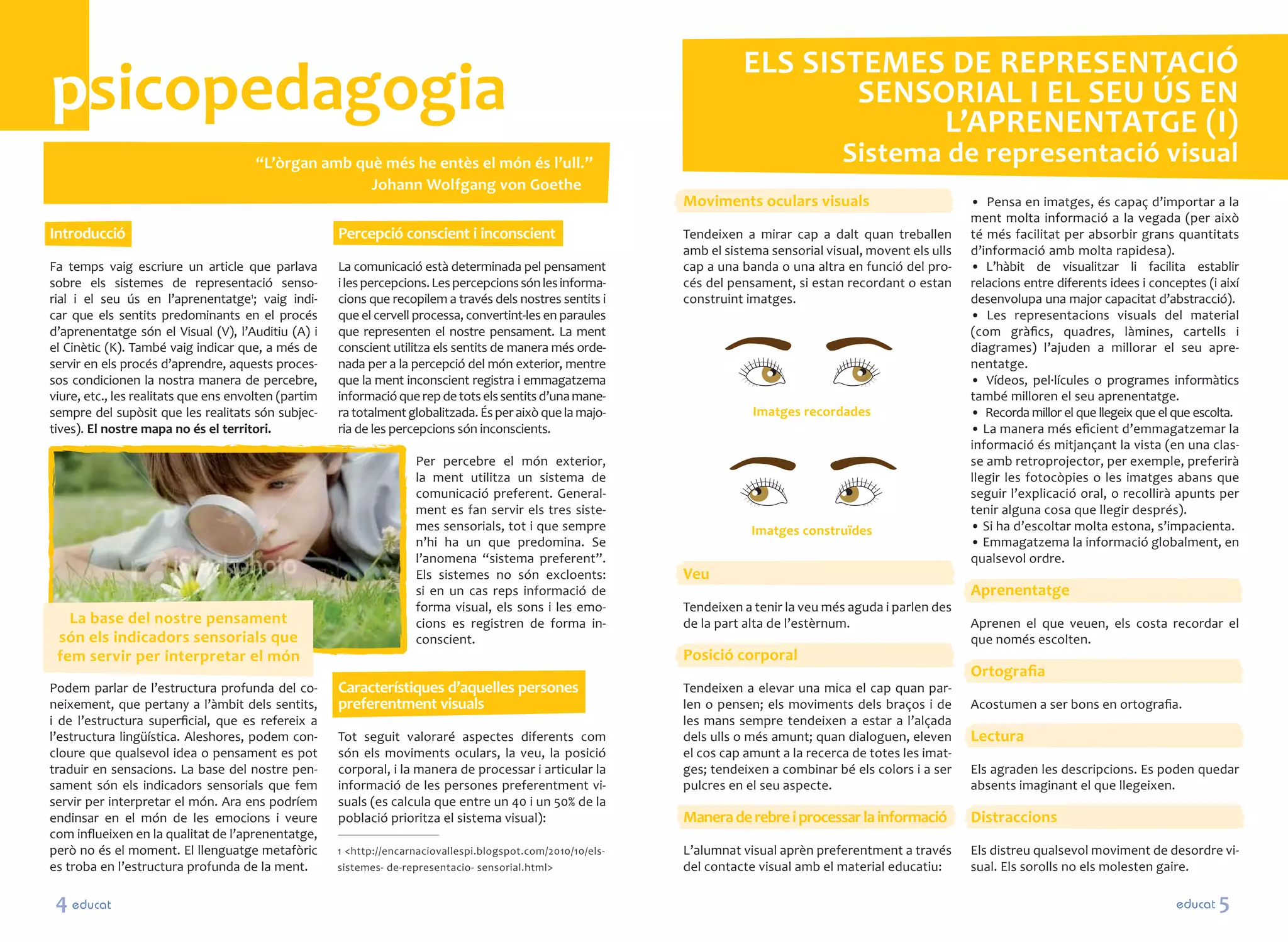 rial i el seu ús en l’aprenentatge1; vaig indi- cions que recopilem a través dels nostres sentits i construint imatges. desenvolupa una major capacitat d’abstracció).