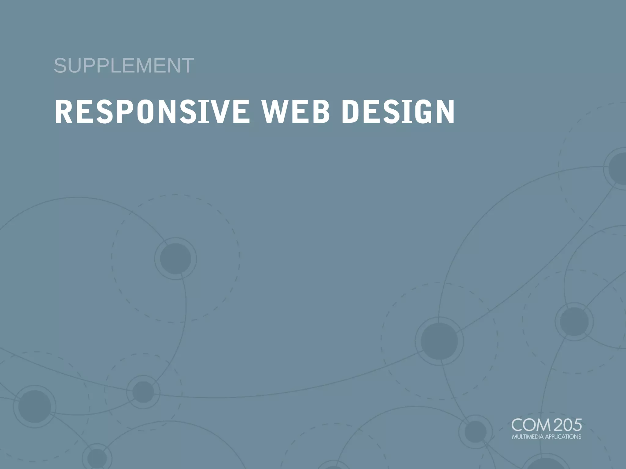 The document discusses responsive web design (RWD) which uses a single code base that adapts layout and functionality based on screen size. RWD uses flexible layouts with percentages instead of pixels, flexible images that scale proportionally, and media queries to apply different CSS styles based on screen width. This allows websites to automatically adapt to phones, tablets, laptops and other devices to provide the best possible viewing and interaction experience for the user. Testing across devices is important for RWD to ensure proper functionality and performance.