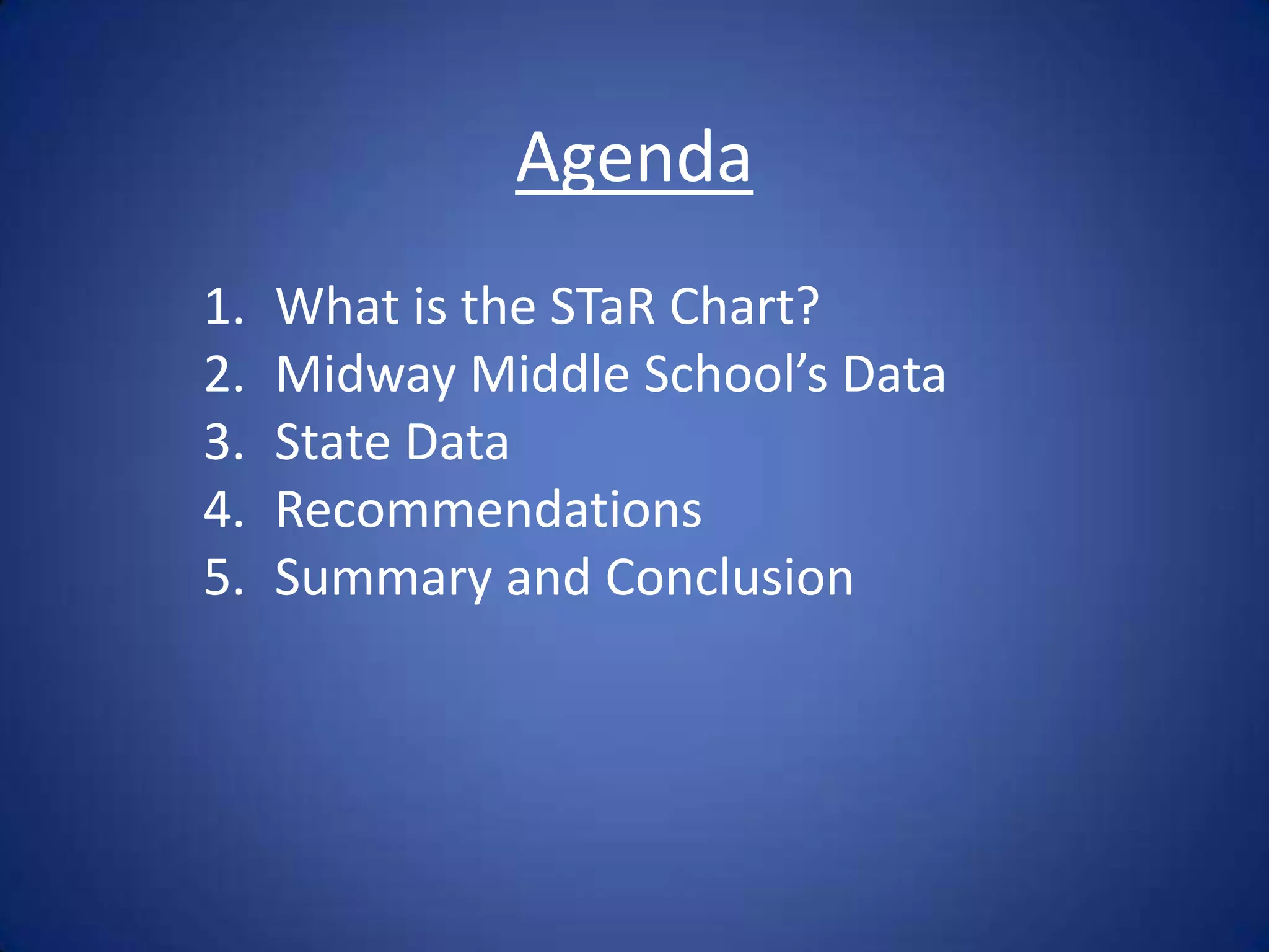 The document summarizes data from Midway Middle School's STaR Chart, which measures a school's technology readiness and use across four key areas. Midway's data shows it scoring in the "Early Tech" range of 0-8. Statewide data from 2007-2008 and 2006-2007 is also presented. The document recommends increasing technology support staff, professional development time, department budgets for technology, and the number of student computers to help Midway progress toward the "Target Tech" range of 21 and above.