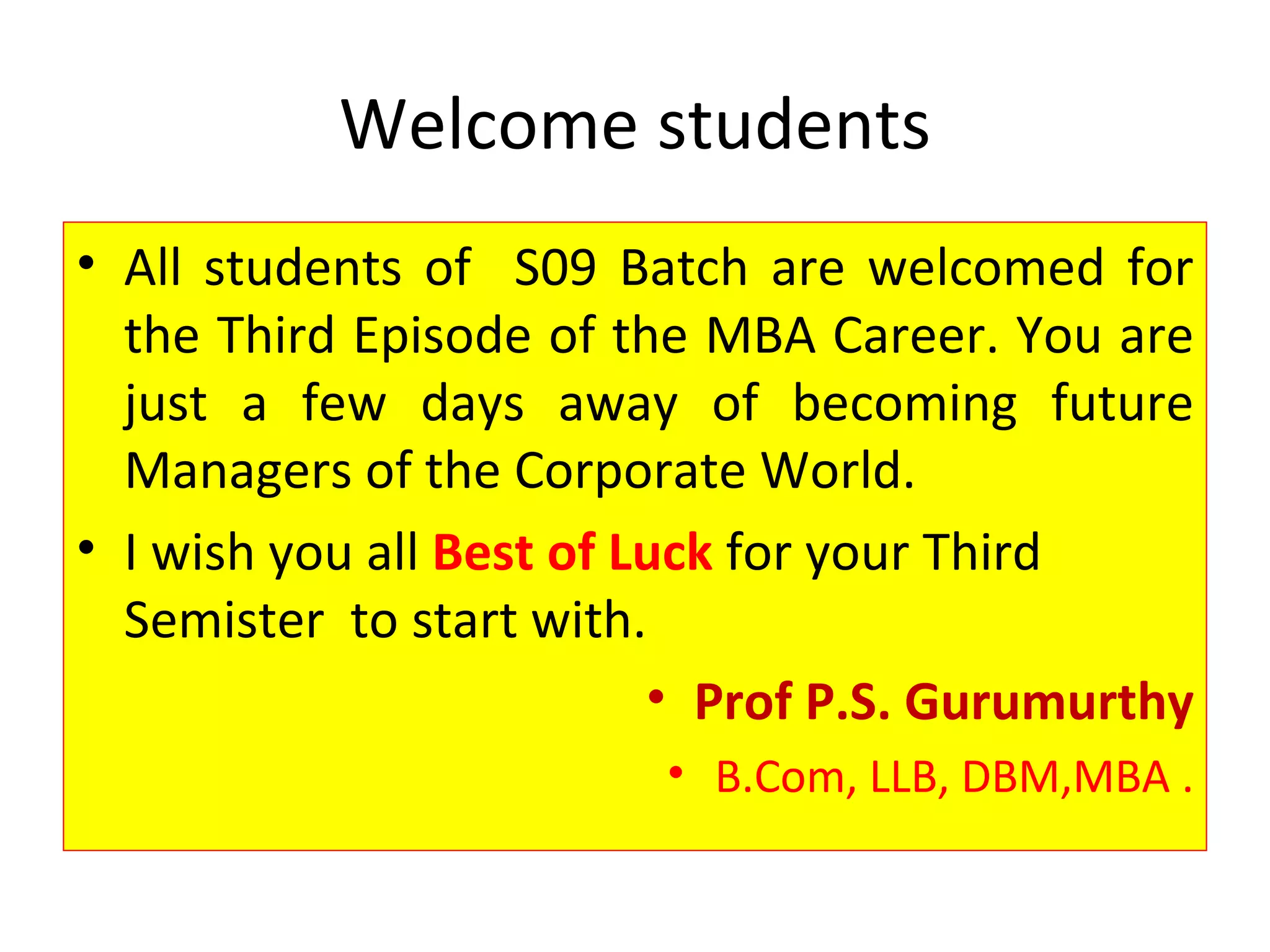 The document welcomes students to the third episode of the MBA Career program. It provides an overview of the Corporate Legal Environment course syllabus which will cover various topics related to business law including contract law, sale of goods act, negotiable instruments, company law, and taxation. It emphasizes the importance of studying business law for MBA students to understand legal issues in business and maintain operations legally and securely.