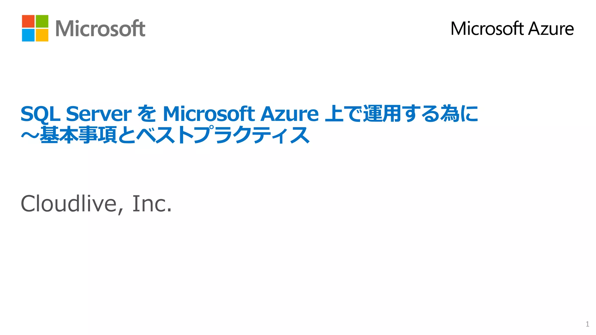 SQL Server をMicrosoft Azure で利用