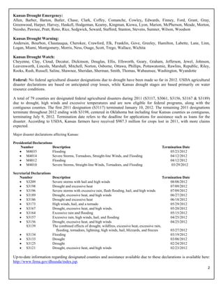 - Kansas continued to experience drought conditions in February 2012, though the situation was less severe than in January due to recent precipitation. Over 60% of the state remained abnormally dry.