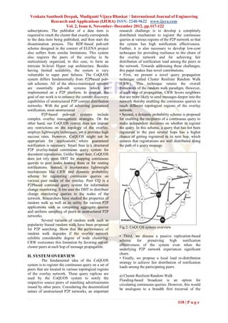 The document discusses the implementation of COQUOS, a middleware for unstructured P2P networks to support continuous queries and enhance content discovery. It introduces novel techniques like the Cluster-Resilient Random Walk and a Dynamic Probability-based Query Registration scheme to improve notification effectiveness and resilience to network churn. The authors highlight the limitations of existing pub-sub systems and present COQUOS as a scalable solution with lightweight mechanisms for query propagation and load distribution.