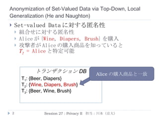 1) Anonymization of Set-Valued Data via Top-Down, Local Generalization (He and Naughton)