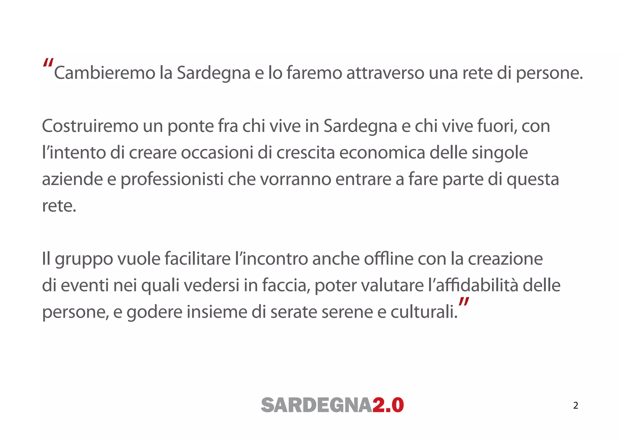 L'associazione s2dot0, fondata nel 2011, mira a creare una rete di collaborazione tra imprenditori, ricercatori e professionisti in Sardegna per stimolare la crescita economica e l'innovazione. Attraverso eventi informali e barcamp, l'associazione promuove l'incontro e lo scambio di idee tra membri della rete, contribuendo a valorizzare il territorio. Il prossimo evento si terrà il 19 novembre e offrirà opportunità di apprendimento sul mondo delle startup.