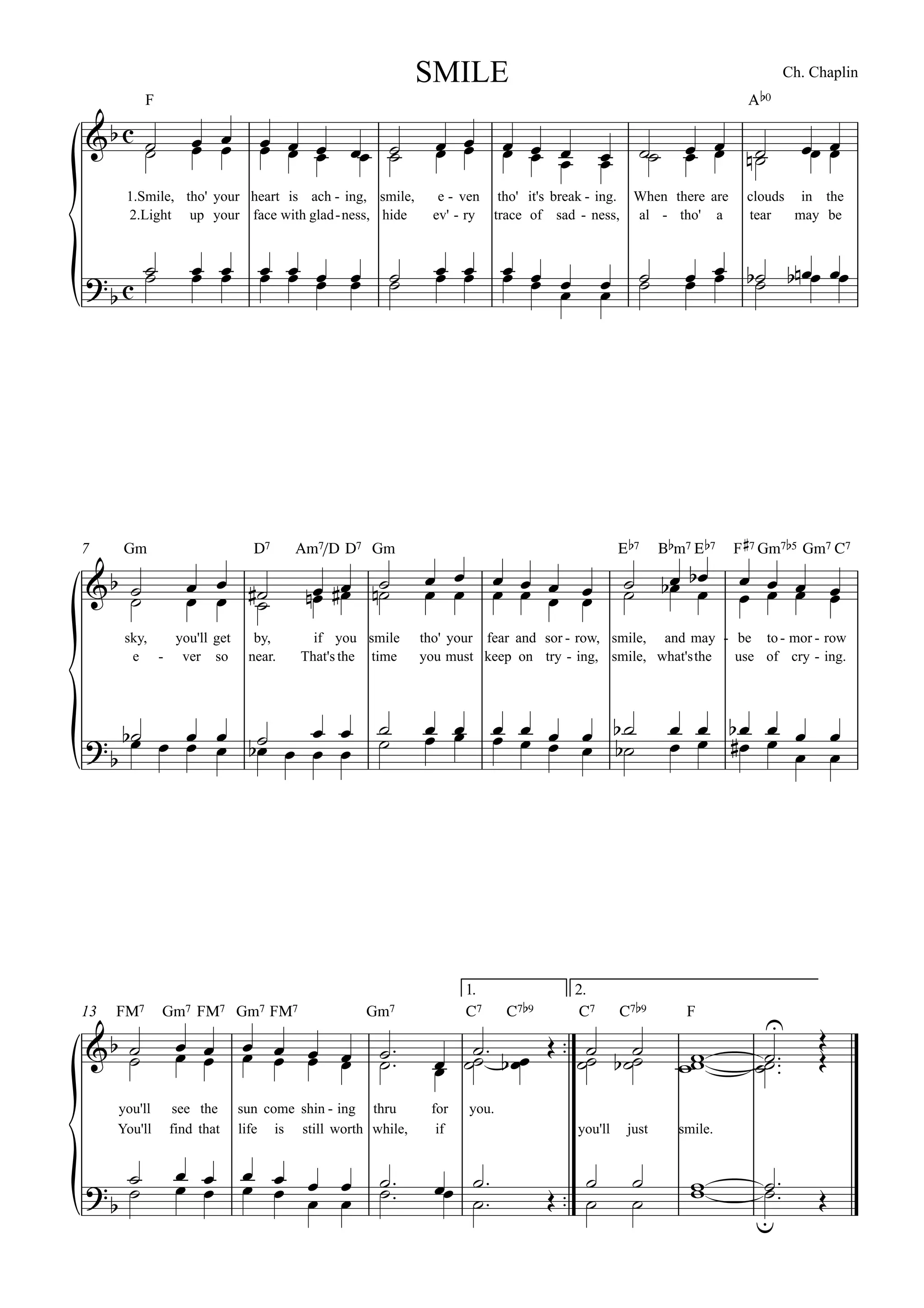 1. The document contains the lyrics to the song "Smile" by Charlie Chaplin.