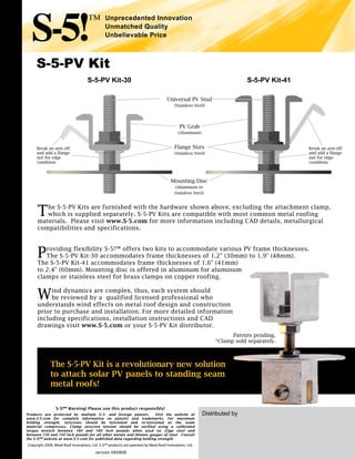 1) The S-5-PV Kit is a new solution for attaching solar PV panels to standing seam metal roofs without penetrating the roof material.