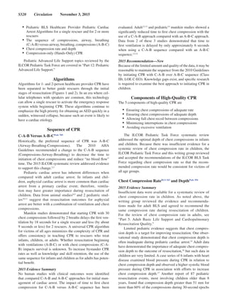 The 2015 American Heart Association guidelines update for pediatric basic life support (BLS) emphasizes significant changes from previous versions, particularly regarding the sequence of CPR and the importance of ventilation during pediatric cardiac arrest. It recommends using the C-A-B (compressions-airway-breathing) sequence and highlights that pediatric cardiac arrest often has asphyxial causes, making ventilation critical. The update also stresses the need for high-quality CPR, including proper compression depth and rate, and provides new recommendations based on a systematic review of relevant literature.