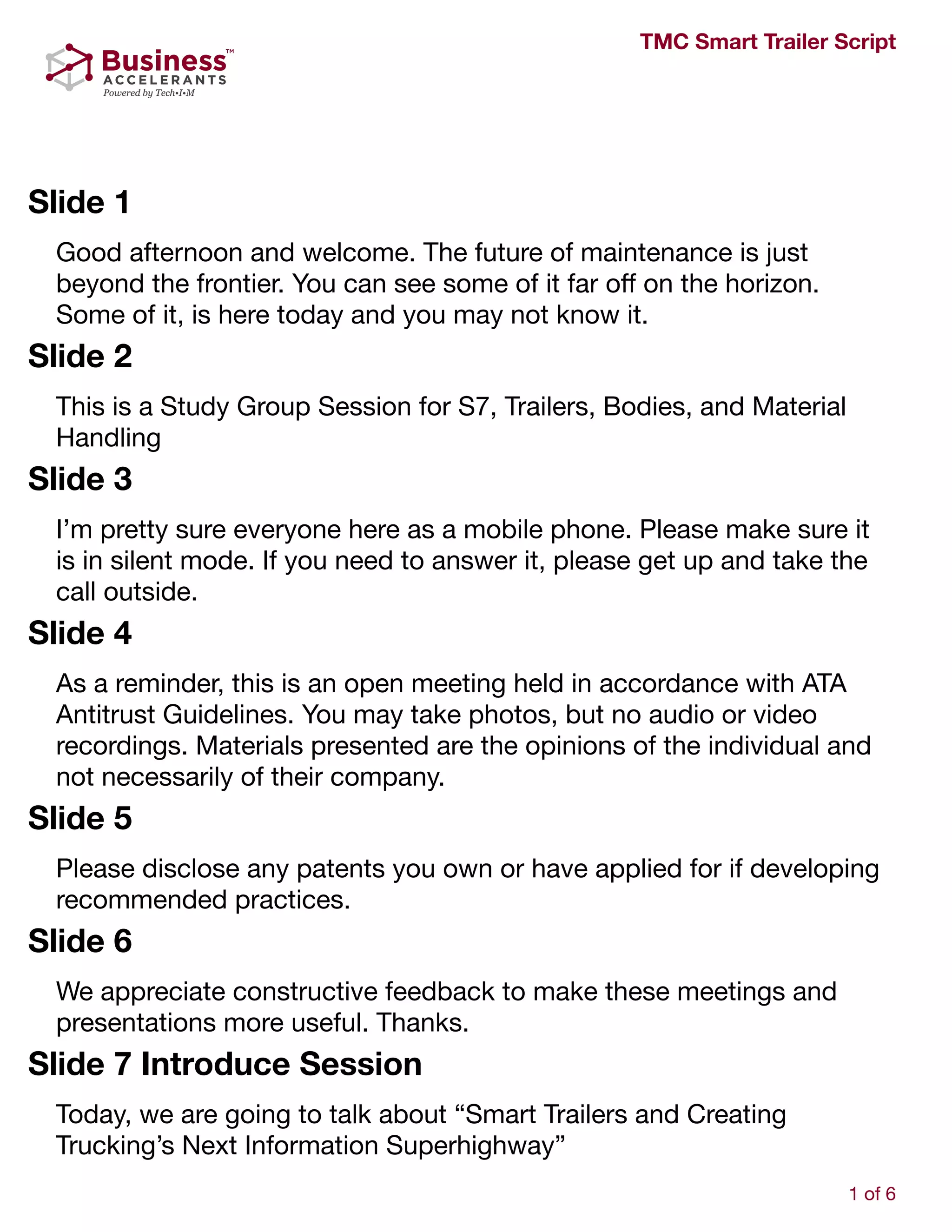 This document provides an introduction and agenda for a panel discussion on smart trailer technology. It introduces the panelists, who represent a fleet operator, trailer OEM, smart trailer expert, and diagnostic supplier. They will discuss how smart trailer systems work, the potential benefits for fleets and maintenance, challenges, and standards. The discussion aims to explore how smart trailer data can enhance operations and redefine trailer capabilities beyond basic freight hauling.