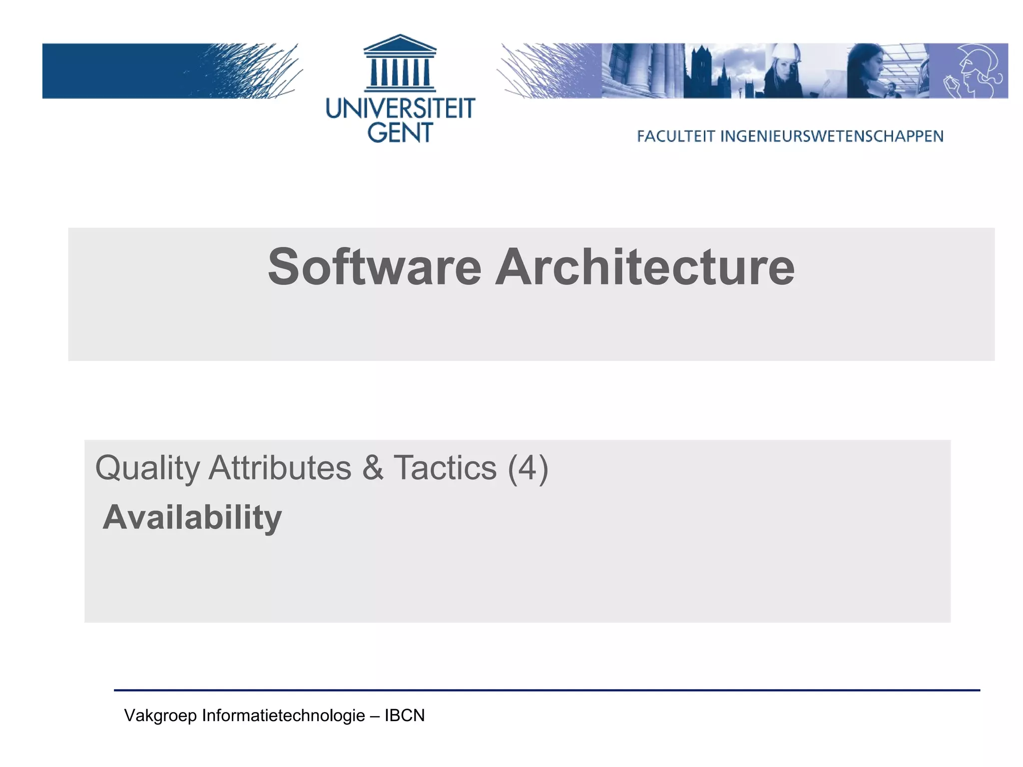 The document discusses software architecture quality attributes, specifically focusing on availability and its critical impact on system performance in light of faults and failures. It outlines generic and specific scenarios illustrating how systems should respond to and recover from failures, detailing various tactics for fault detection, recovery, and prevention. Key concepts include the differentiation of fault types, measures of availability, and the importance of system responses based on environmental conditions.