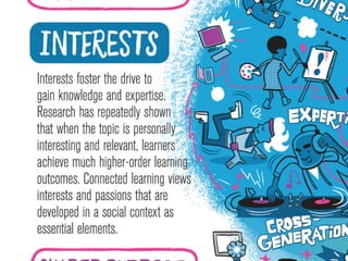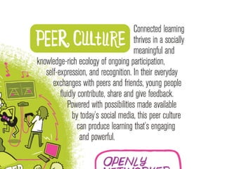 The document outlines the goals and discussion topics of a panel on using social and digital technologies to build professional relationships and enhance learning. The panel aims to explore how social media can be used to network and build genuine, mutually beneficial relationships both online and offline. Key questions discussed include how panelists have used social media to develop relationships, maintain meaningful online connections, and move relationships from online to in-person settings.