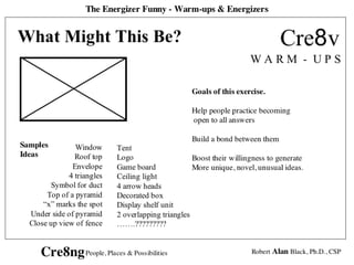 The document emphasizes shifting from traditional teaching methods to fostering creative learning experiences for students. It outlines various traits of creative thinking and suggests practical strategies and tools to enhance creativity in educational settings. The author, Robert Alan Black, pays tribute to his mentor, E. Paul Torrance, and encourages educators to embrace innovative practices that unlock students' creative potential.