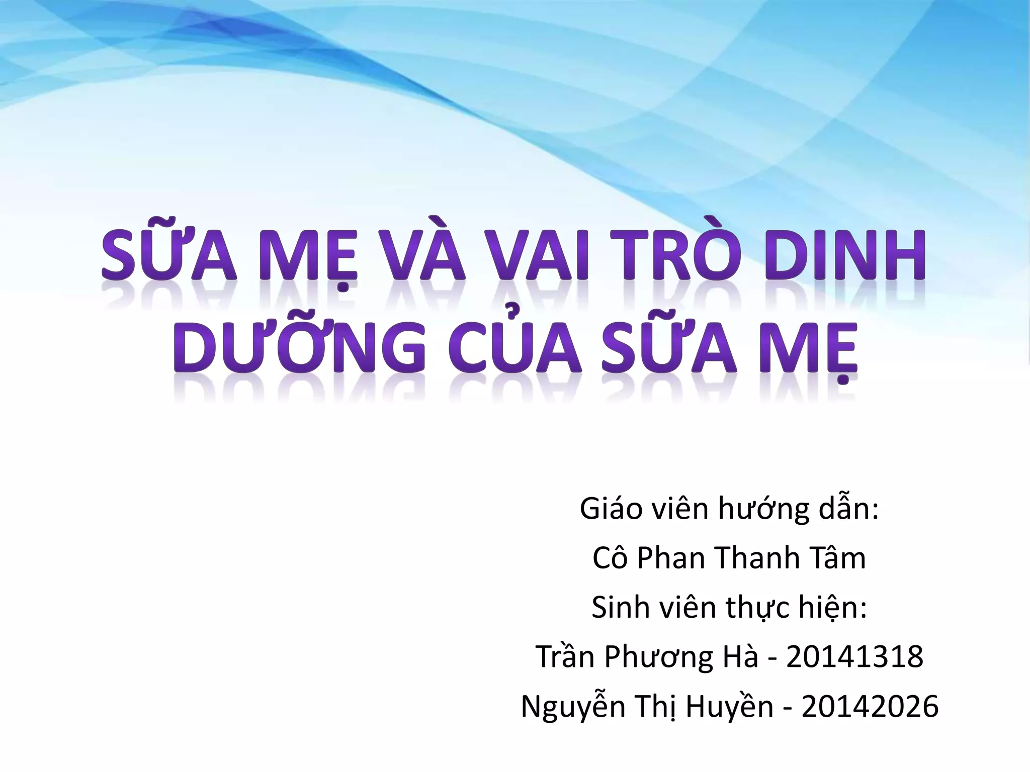 Tài liệu trình bày về sữa mẹ, bao gồm thành phần dinh dưỡng, phân loại và lợi ích cho trẻ sơ sinh. Sữa mẹ cung cấp các chất cần thiết cho sự phát triển khỏe mạnh của trẻ, đồng thời tăng cường miễn dịch. Nó cũng chỉ ra những nhu cầu dinh dưỡng của trẻ và khuyến nghị nuôi con bằng sữa mẹ ít nhất trong 12 tháng.