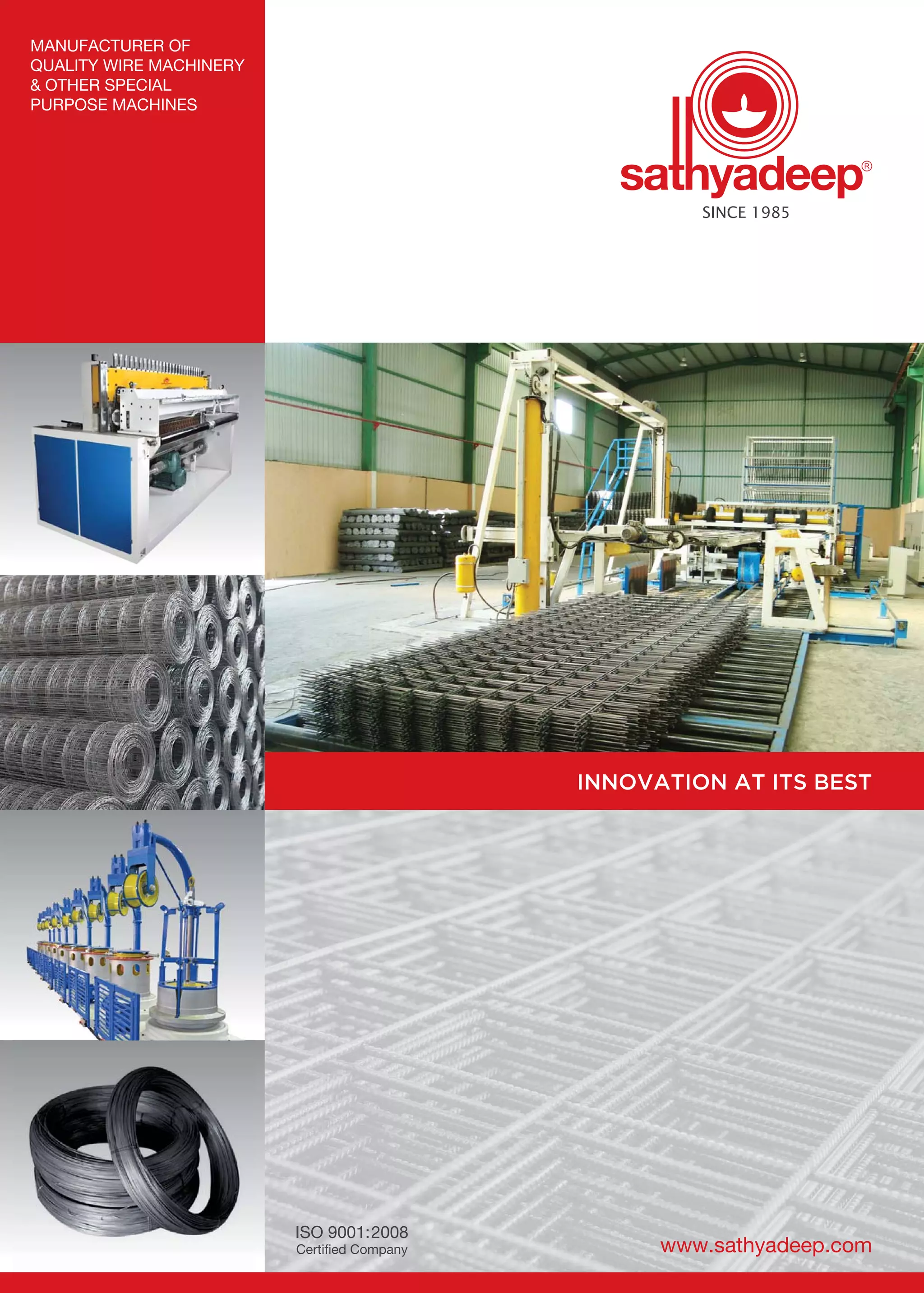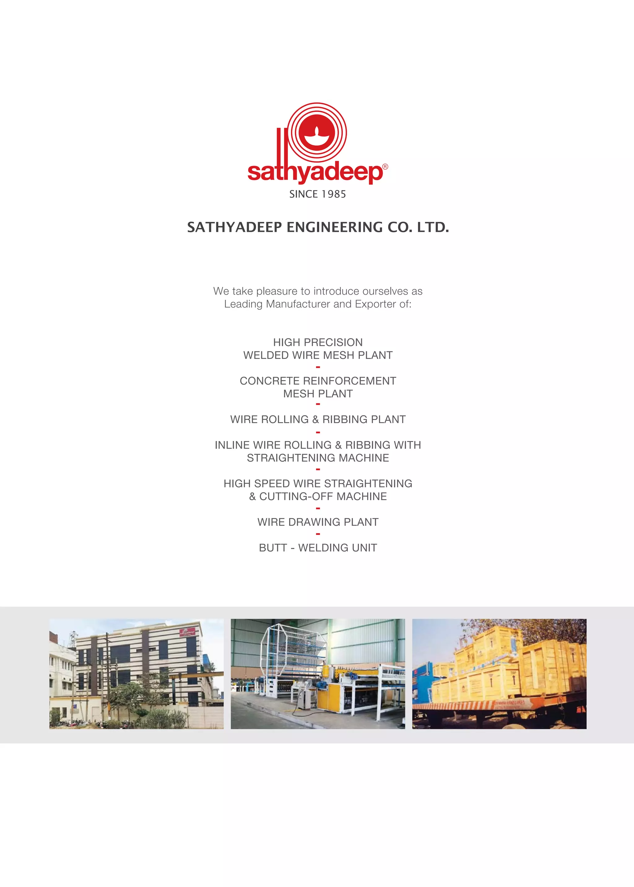 Sathyadeep Engineering Co. Ltd., established in 1985, is an ISO 9001:2008 certified manufacturer and exporter of high-precision wire machinery, including welded wire mesh plants and special purpose machines. With over 300 installations globally, the company prioritizes quality, innovation, and customer satisfaction while expanding its manufacturing capabilities across a significant infrastructure. The company is known for its strong after-sales support and commitment to ethical business practices.
