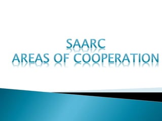 The document discusses the South Asian Association for Regional Cooperation (SAARC), an intergovernmental organization of 8 South Asian nations. It was established in 1985 to promote economic and social progress in South Asia. SAARC focuses on areas like agriculture, trade, tourism, and more. Notable agreements include establishing the South Asian Free Trade Area to reduce customs duties between members and promoting regional cooperation in trade, finance, and economic matters. The organization aims to accelerate economic growth across South Asia.
