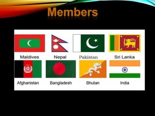 SAARC is a regional intergovernmental organization established in 1985 with 8 member states located in South Asia. It aims to promote economic and regional integrated cooperation as well as ensure collective prosperity, peace and progress among member nations. However, SAARC faces challenges like conflicts between members, lack of unity, ineffective implementation of programs, and security issues hampering trade. The 19th SAARC summit scheduled in Islamabad was postponed due to members like India, Afghanistan and Bhutan withdrawing over security concerns exacerbated by terrorism in the region.
