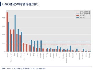 SaaS各社の時価総額(億円) 資料:Yahoo!ファイナンスをもとに著者作成(’22年は1/21時点の値)