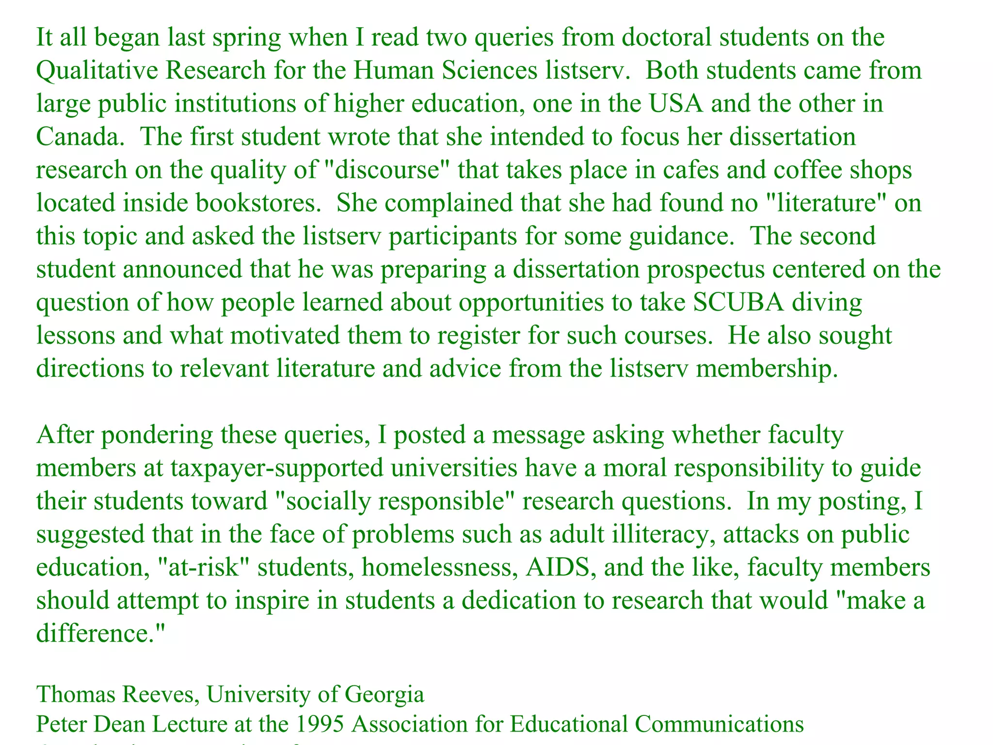 The document introduces design-based research as a response to issues in educational research, emphasizing the need for relevance and practical impact in studies. It critiques existing qualitative methods, outlines problems with educational technology research, and discusses student performance in virtual versus traditional education settings. Ultimately, it advocates for iterative, theory-guided interventions in authentic educational contexts to improve outcomes and relevance in research.