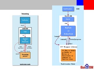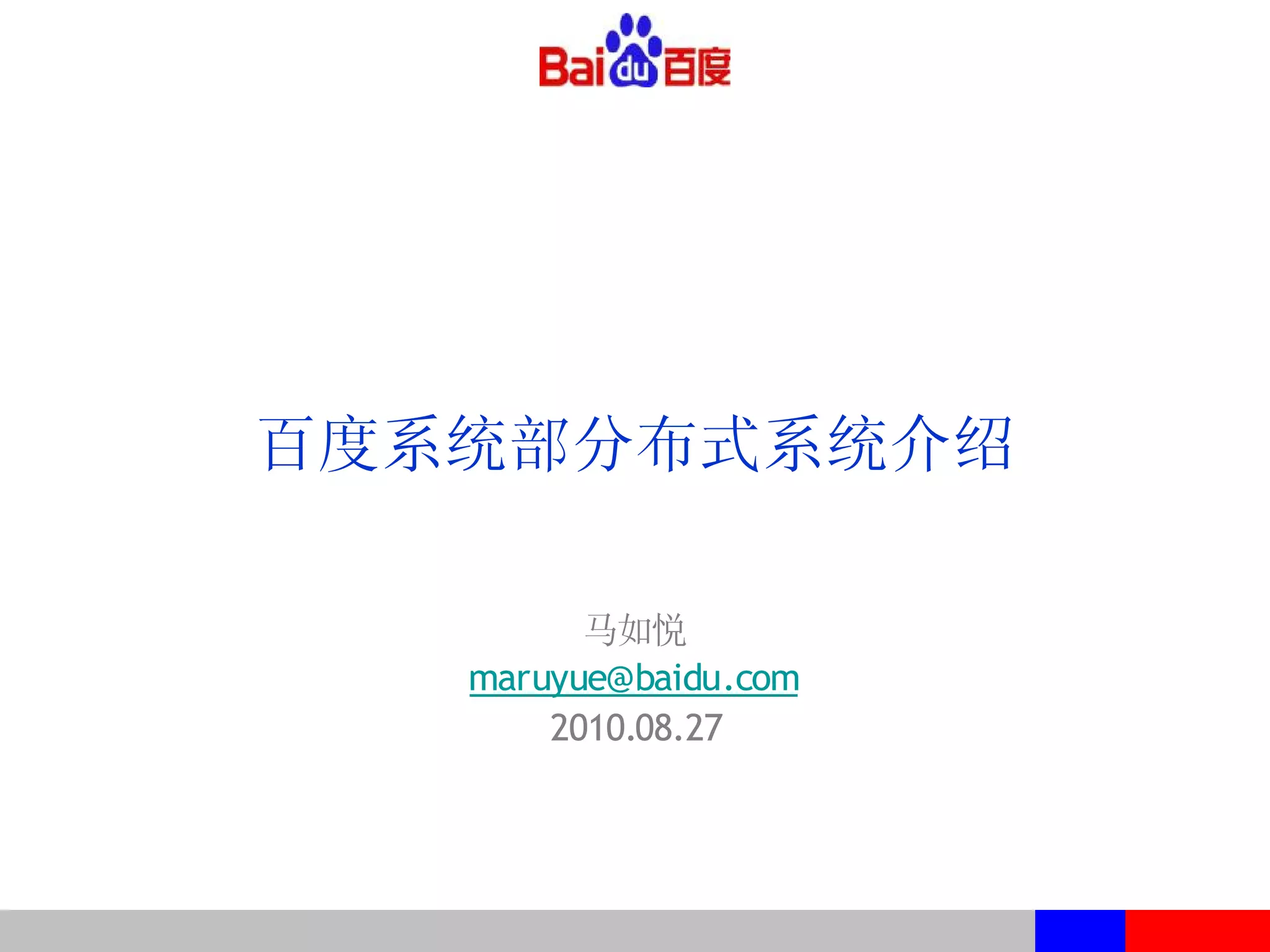本文介绍了百度的分布式系统,包括高性能计算(HPC)、MapReduce计算和分布式存储。文中详细讨论了计算平台、调度与执行层的结构,以及如何通过Hadoop扩展C++接口来提升复杂任务的处理效率。此外,还有关于分布式存储系统HDFS2的设计与管理策略的讨论,强调了可扩展性和降低请求负载的重要性。