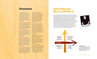 This document is an introduction to the book "The Lovemarks Effect" by Kevin Roberts, CEO of Saatchi & Saatchi. It discusses the concept of Lovemarks, which are brands that consumers are highly emotionally attached to and respect. The book features commentary from numerous business leaders and experts. It explores how companies can create Lovemarks and examines real-world examples of brands that have become Lovemarks. The goal is to help companies transform their relationships with consumers and thrive in today's marketplace by forging deeper emotional connections.