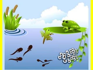 Mammals are vertebrates that have fur or hair, breathe with lungs, give live birth, and drink milk from their mothers. They come in a wide range of sizes from whales to mice. Birds are also vertebrates that lay eggs, have feathers and wings, and have beaks adapted for different diets. Fish are vertebrates that breathe through gills, have fins and scales, and live in water. Amphibians go through a metamorphosis where they use gills as juveniles and lungs as adults, and can live both on land and in water.