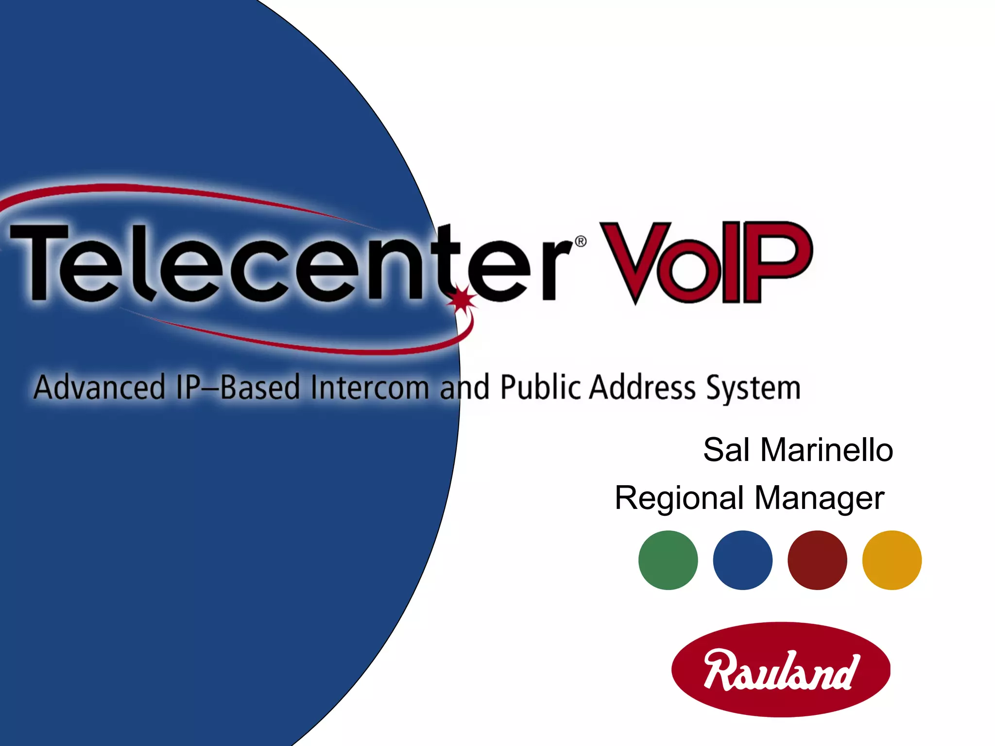 The document discusses Rauland-Borg Corporation's line of Telecenter products for school communication systems. It provides a history of the Telecenter products dating back to 1969 and describes the company's investment in engineering including research and development, technical support, and manufacturing quality programs. Key products discussed are the Telecenter VI intercom system, Telecenter VoIP intercom, and integrated clock solutions. The document promotes these products as part of Rauland's S.A.F.E. strategy, which stands for providing school communication systems that ensure safety, affordability, functionality, and easy everyday use.