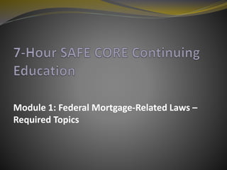 This document outlines the key topics covered in Module 1 on federal mortgage-related laws, including: