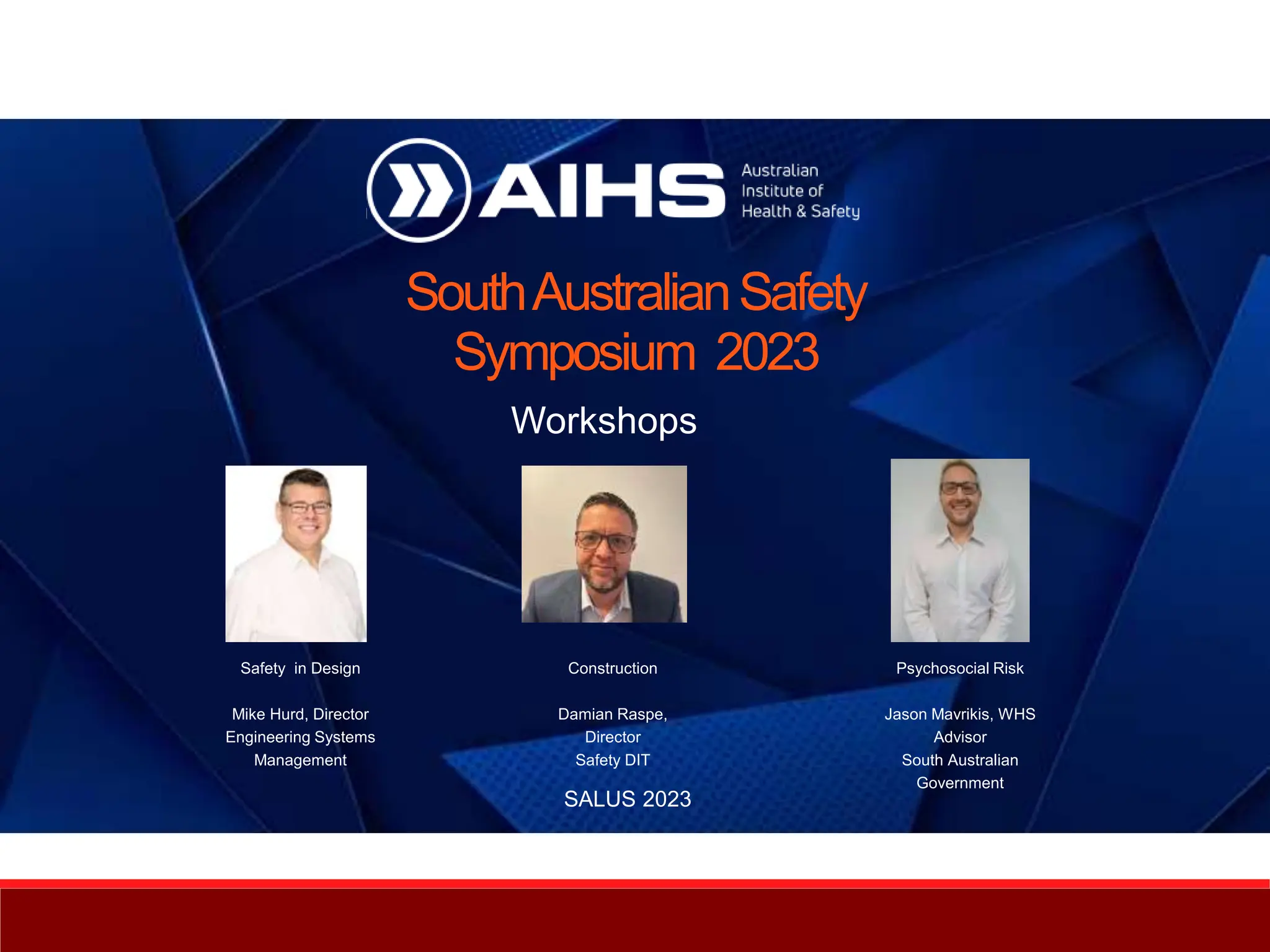 The document outlines Mike Hurd's workshop on "Safety in Design" at the 2023 South Australian Safety Symposium. The workshop will cover the 11 steps to consider for safety in design planning as part of the engineering design lifecycle. It emphasizes that safety should be built into the design from the beginning rather than added later. It also provides information on Mike Hurd and his company Engineering Systems Management, which focuses on safety engineering consulting.