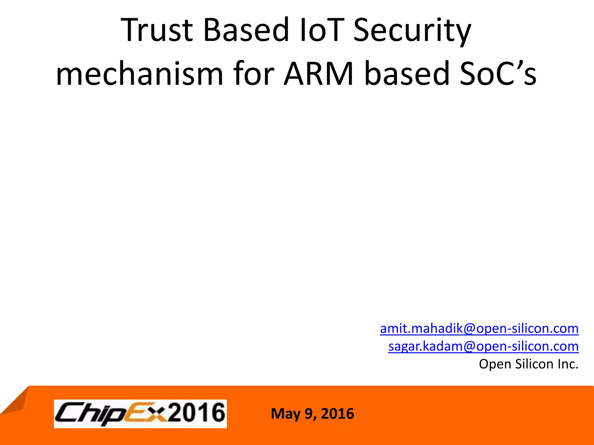 The document discusses trust-based IoT security mechanisms for ARM-based systems of things. It covers IoT architecture and security threats. It proposes using a SHUBHAM FPGA platform with a Cortex-M4F and cryptographic IP to provide features like secure boot, firmware over-the-air updates, and data security for sensors. Implementing this security would require additional gates and memory but help protect against attacks.